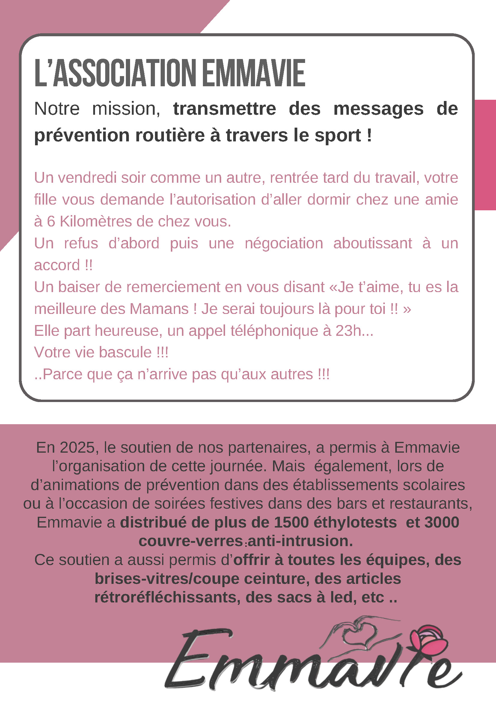 La vie est précieuse, mais si fragile. Redoublons tous d’efforts et d’attention sur la route.